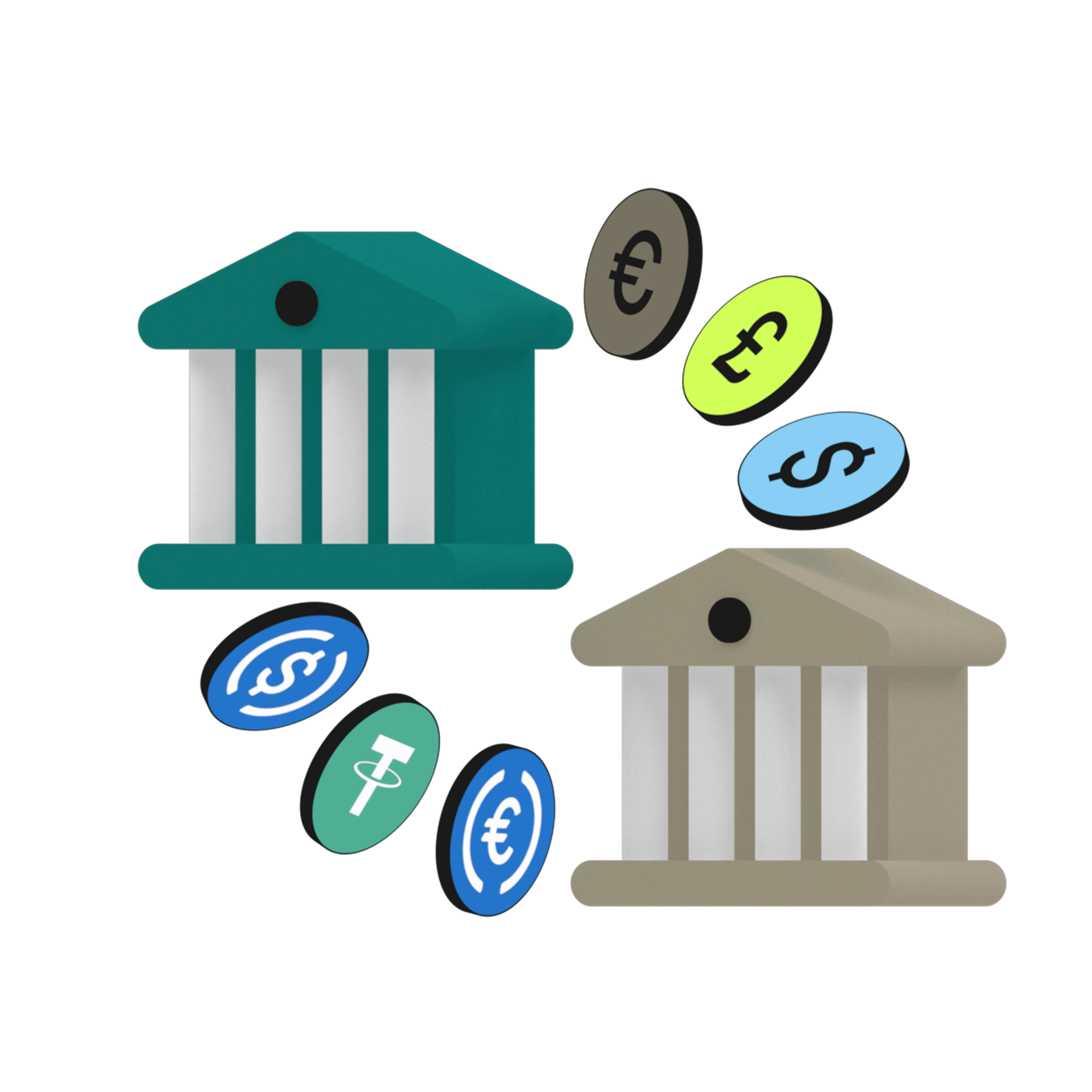 DAOs and protocols need to move treasury between fiat and stablecoins. Pay contributors in local currency, collect protocol revenue in USDC, convert between currencies instantly. Manage fiat and stablecoin treasury from one API.